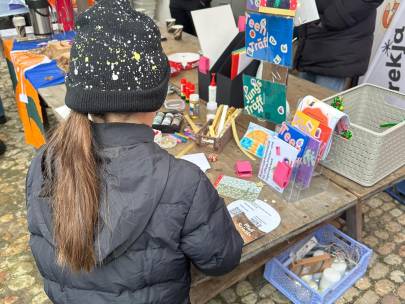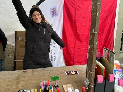 Bei unserem Stand hatten Kinder die Möglichkeit, ein Foto zu machen, dieses direkt auszudrucken und anschliessend daraus eine eigene Postkarte zu gestalten. Die Freude der Kinder war gross, und sie kreierten glitzernde und kreative Karten, die sie stolz mit nach Hause nehmen konnten.