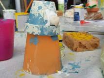 Am zweiten Mittwoch wurden unsere Blumenkisten verschönert. Dazu malten die Kinder sie in den Farben von Moosseedorf an. Nebenbei wurden „Kressechöpfli“ in verschiedensten Farben und Formen hergestellt. Die kleinen Gestalten sollten, genau wie alles andere was während des Aktionsmonates gebastelt wurde, als Dekoration für das Abschlussfest dienen.