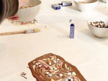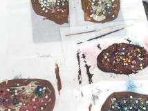 Braune, weisse und schwarze Schoggi, Streusel, Karamell, Smarties ... es entstehen viele tolle Kreationen. Da es draussen kalt ist, trocknet die Schoggi schnell und schon bald kann sie in einem Säckli schön verpackt werden, zum selber knabbern oder auch als Geschenk. Anschliessend bleibt noch Zeit zum spielen und ein z'Vieri.